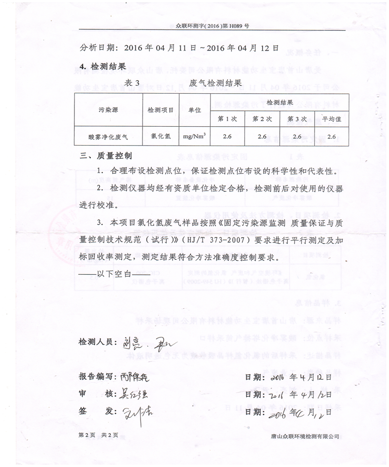 我們?yōu)槊课豢蛻籼峁┧犰F設備的專業(yè)氣體檢測,每個客戶的檢測結果都大大低于國家標準和地方標準。